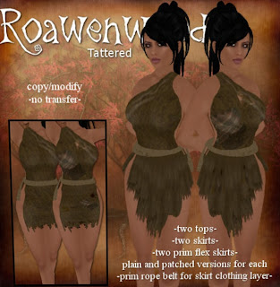 As some of you may know, but not many, Roawenwood is not only a great place to get furniture for your Gorean home but also a great place for silks and camisks! The pictures above are of the newest collection, Tattered. Tattered is a simple yet elegant design. It has 2 styles, one that looks fresh and clean then the second style looks as if it's been trashed and worn out. Tattered comes in 5 yummy colors and of course, a fat pack. The singles are $250L and the fat pack is $875L.